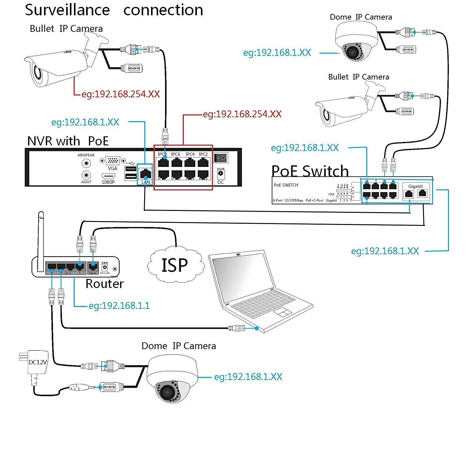 - 8-ch Network Cameras Can Be Connected, Plug & Play Up to 8 Independent PoE Network Connections